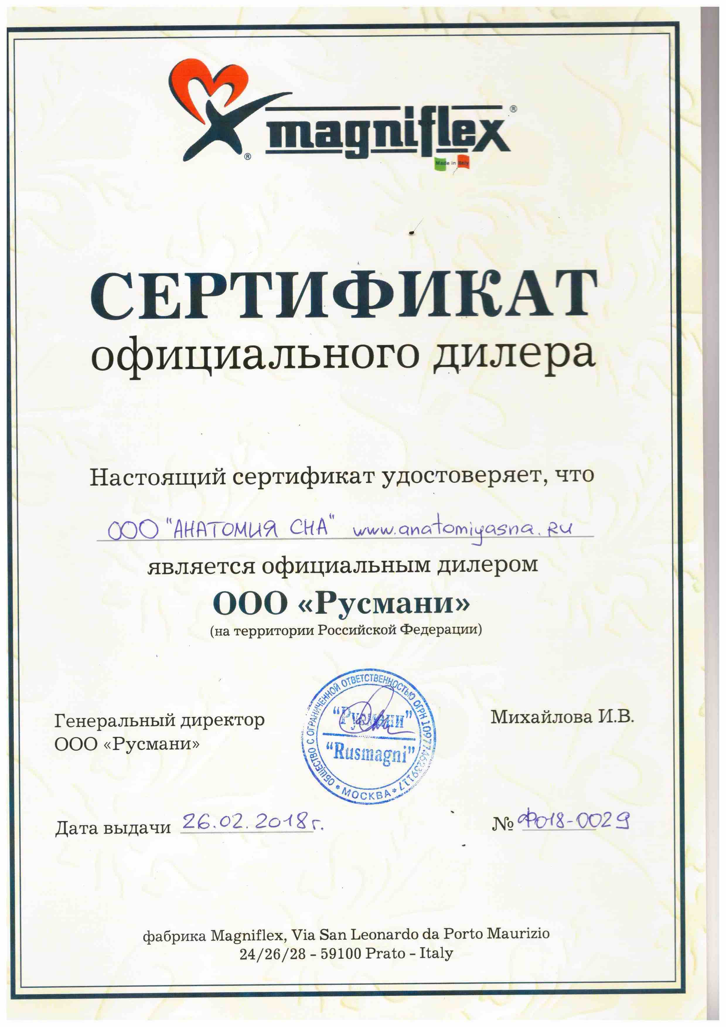 Сертификаты официального дилера