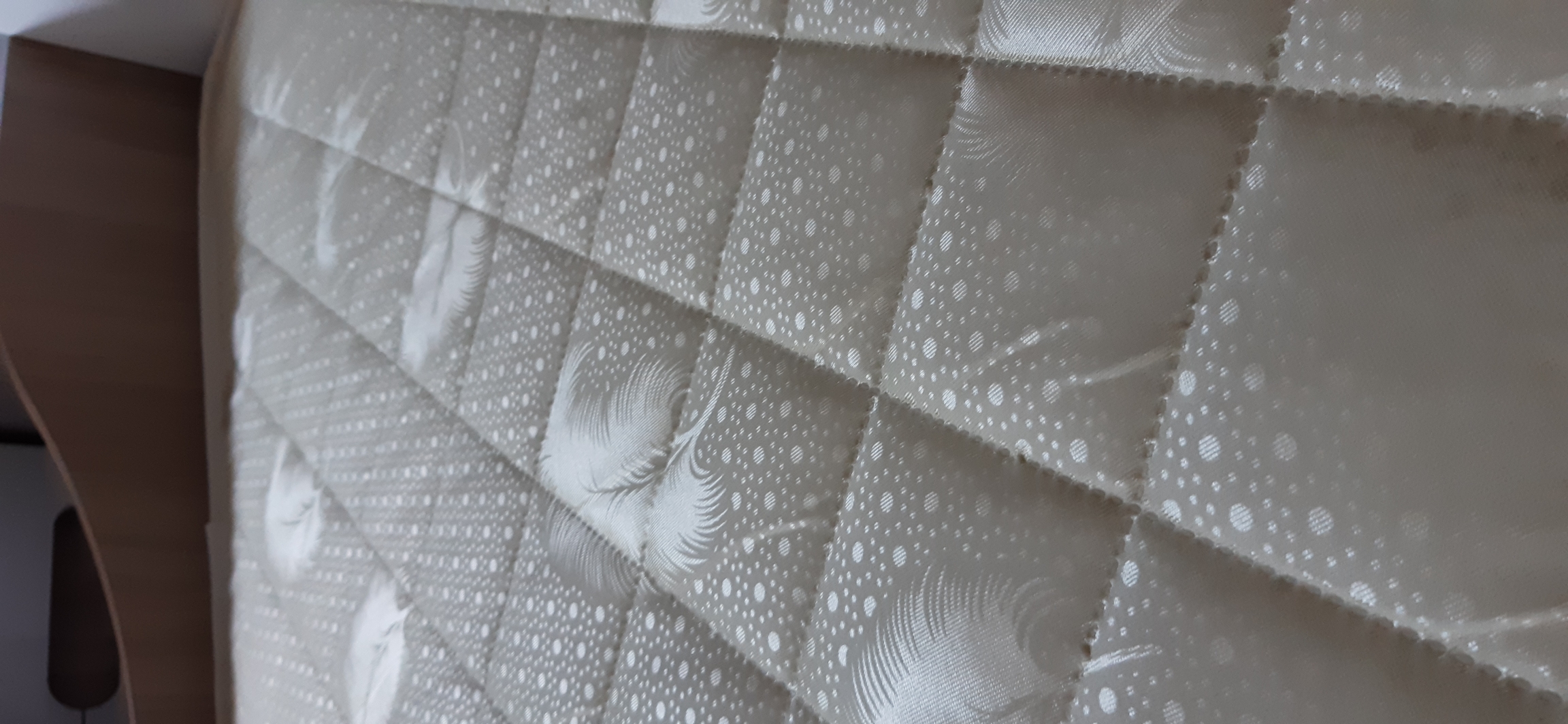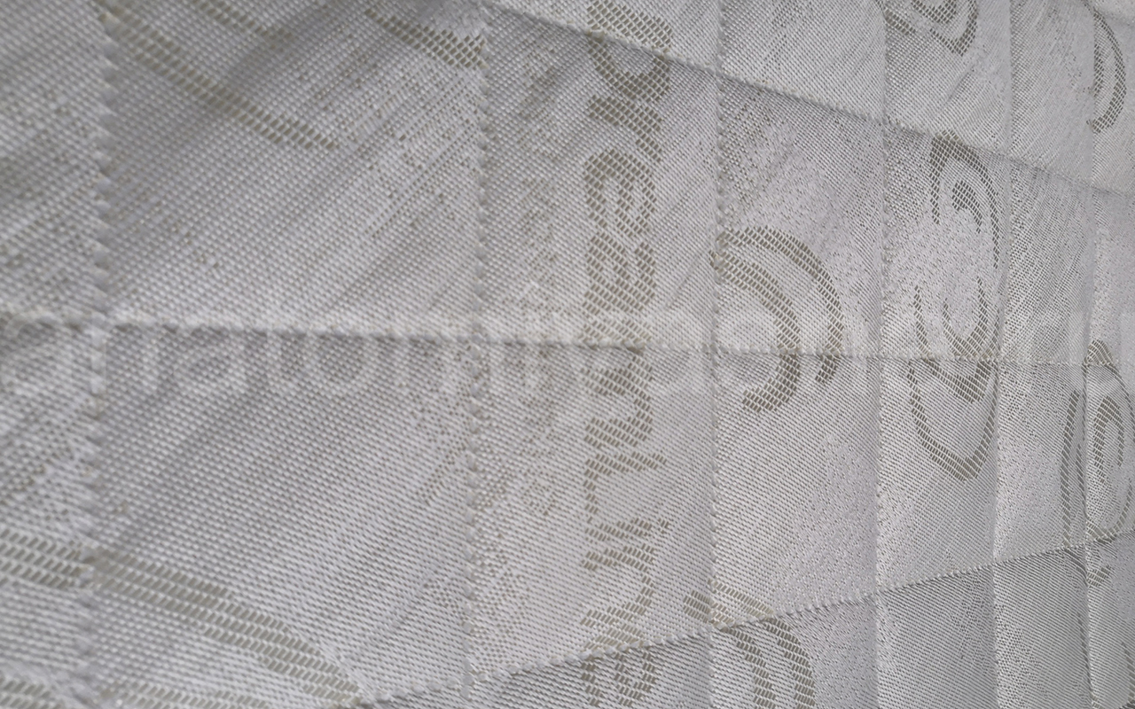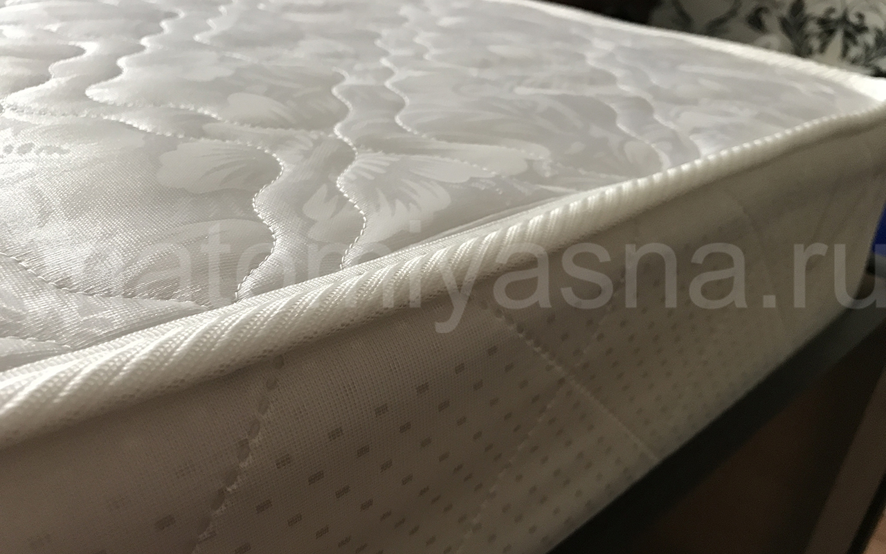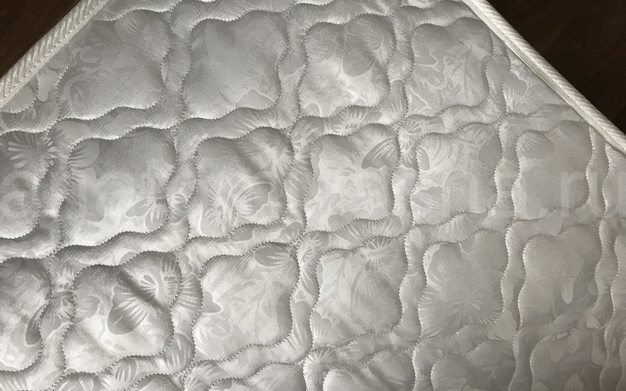 Верхнее покрытие матраса хлопковый жаккард - высокопрочная натуральная ткань, состоящая из хлопчатобумажного волокна с особым способом переплетения волокон. Хлопковый жаккард может быть двойным (дублированным) или недублированным. Как правило, дублированный жаккард используют в качестве верхнего покрытия для матрасов, чехлов и наматрасников. Особенность материала заключается в том, что рисунок, получаемый в результате переплетения нитей волокна, одинаковый с лицевой и изнаночной стороны. Самой важной характеристикой ткани является его экологичность и износостойкость.